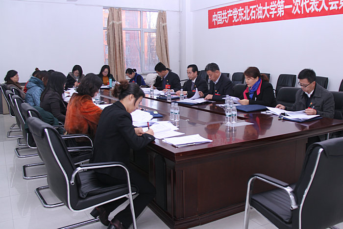 (记者/摄影 赵秀波 许丽娜)11月28日下午3时10分,中国共产党东北石油大学第一次代表大会代表团召开第一次会议。会上,各代表团召集人传达了刚刚召开的代表团召集人会议内容和会议精神,通过了代表团团长、副团长建议名单,并指定代表团联络员;审议了代表资格审查报告(草案),党费收缴、使用和管理情况报告(草案)和大会议程(草案)、大会选举办法(草案)。各代表团还酝酿了大会主席团成员、秘书长建议名单。