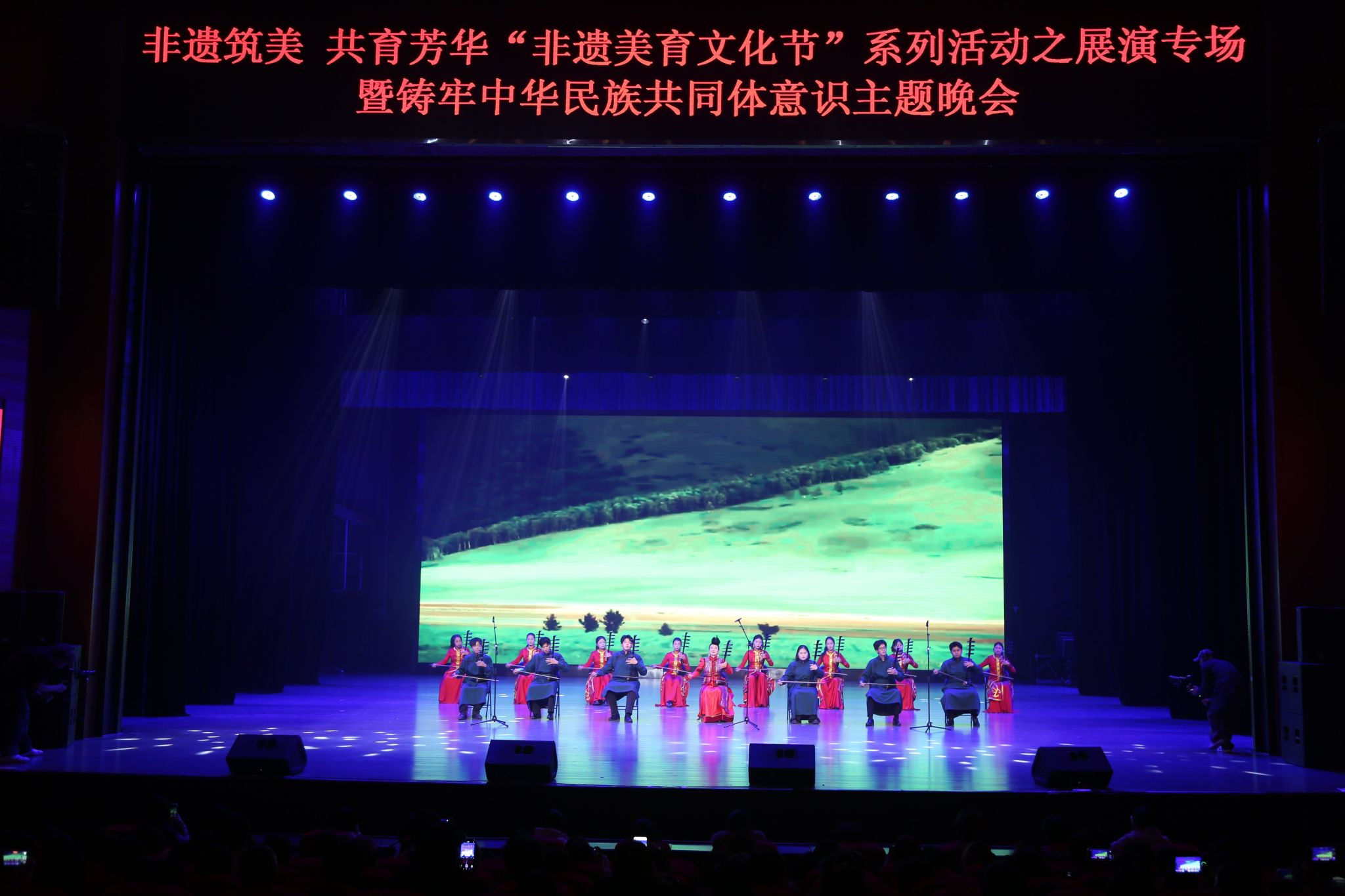 10月16日晚,非遗美育文化节暨铸牢中华民族共同体意识主题晚会在音乐厅精彩上演,为师生带来一场沉浸式美学旅程。演出以舞台为画卷,苍茫的呼麦、悠扬的马头琴、婉转的四胡与豪放的民族民间舞相继登场,为观众带来一场沉浸式的视听盛宴,展现各民族血脉相连、共筑中华民族精神家园的深厚底蕴。