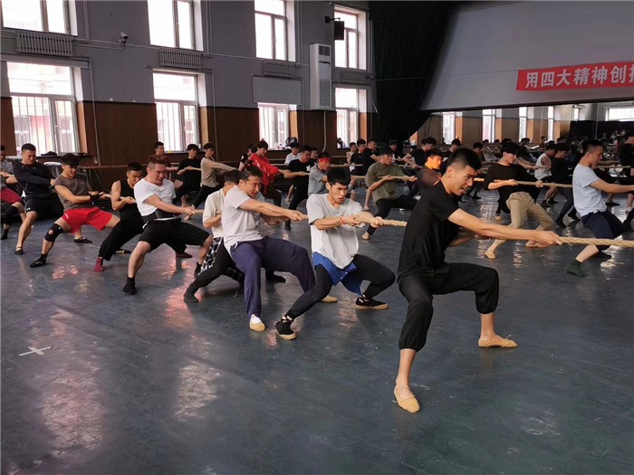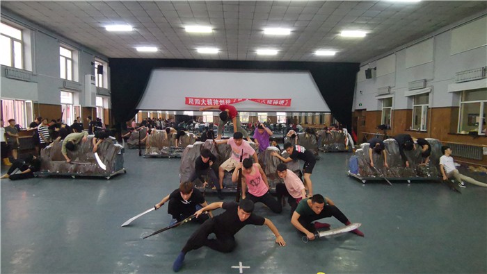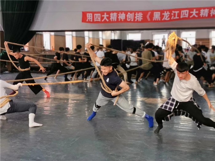 此次演出我校艺术学院选派三个年级共24名学生,参演了三个篇章全部九个节目,同时有三名学生担任整场演出的主要演员,这是我校继在北京参加中国海军建军70周年演出后的又一次重要演出任务。在接到演出任务以后,学校领导高度重视,在演员选派和学生的学习、生活、假期、参加省学生运动会等方面进行了协调和安排,7月4—10日在我校前期排练和校内集训的过程中多次到一线对演员和教师进行指导和慰问。艺术学院全员动员,自7月15日赴哈参加集中训练以来,在为期一个多月艰苦集训中,师生们放弃了假期休息时间,克服了高温酷暑、高强度训练、疲劳等困难,服从指挥和调度,始终以忘我的精神刻苦排练,特别是临近演出前一周,几乎每天都要训练到晚12点,只能睡四五个小时的觉,但学生们从未叫苦叫累。