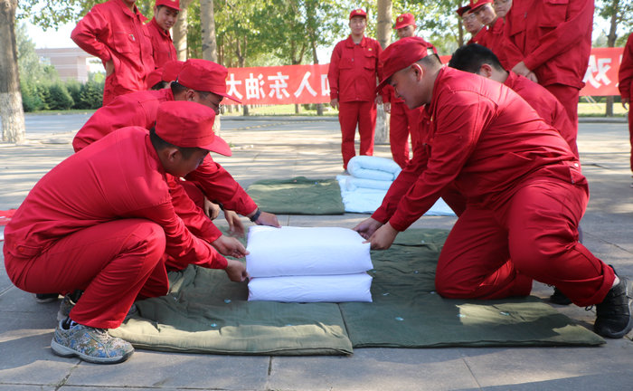 军训期间除完成队列、擒敌拳、刺杀操、捕俘刀、轻武器操作、战场救护、内务整理等多项训练外,还开展了心理拓展训练、校警反恐处突演练、退役大学生战术情况处置演练等活动。