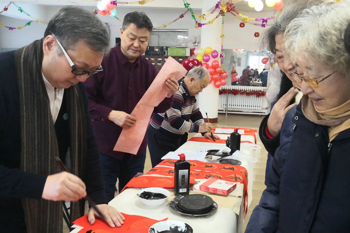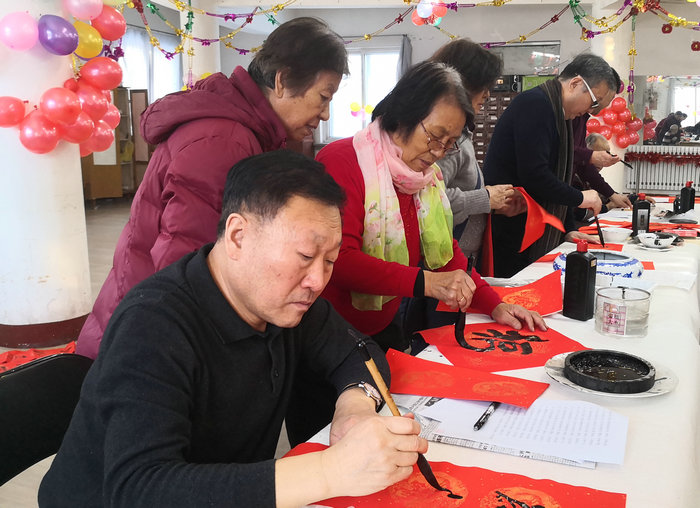 (通讯员 彭向东) 写春联庆新春,弘扬中华传统文化。12月26日,离退休工作处在离退休职工活动中心组织开展了 “把吉祥带回家,让传统留下来,迎新春送春联”活动,邀请大庆市老年书画研究会书法家为离退休职工书写春联,喜迎新春。