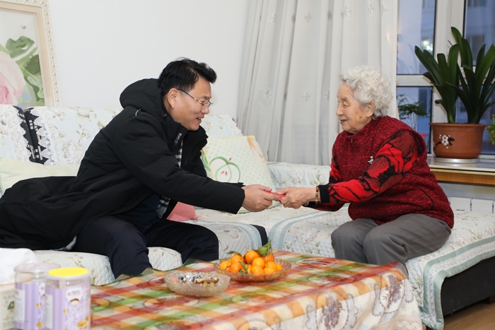 (摄影 赵秀波 许丽娜 樊星)12月30日下午,校党委书记孙明学、党委副书记刘景顺、纪委书记王树森、副校长于长青、校工会主席郝丽红带队,分三组对我校的退休老领导、老专家、工伤致残职工、老专家遗属、老领导遗属、学校供养遗属进行走访慰问,向大家送去新年的祝福。