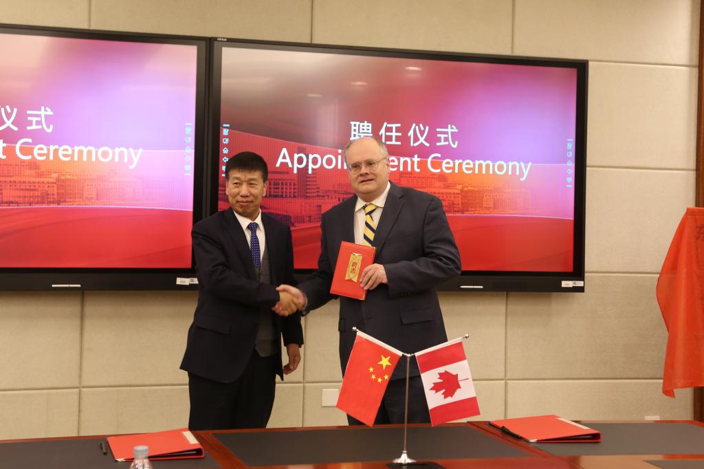 高洪峰为Hugh Horton教授颁发了客座教授聘书,付晓飞与Hugh Horton教授共同为联合实验室揭牌,于长青代表学校签署校际合作协议。