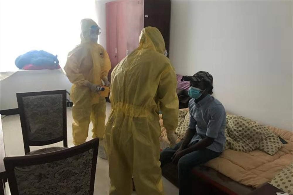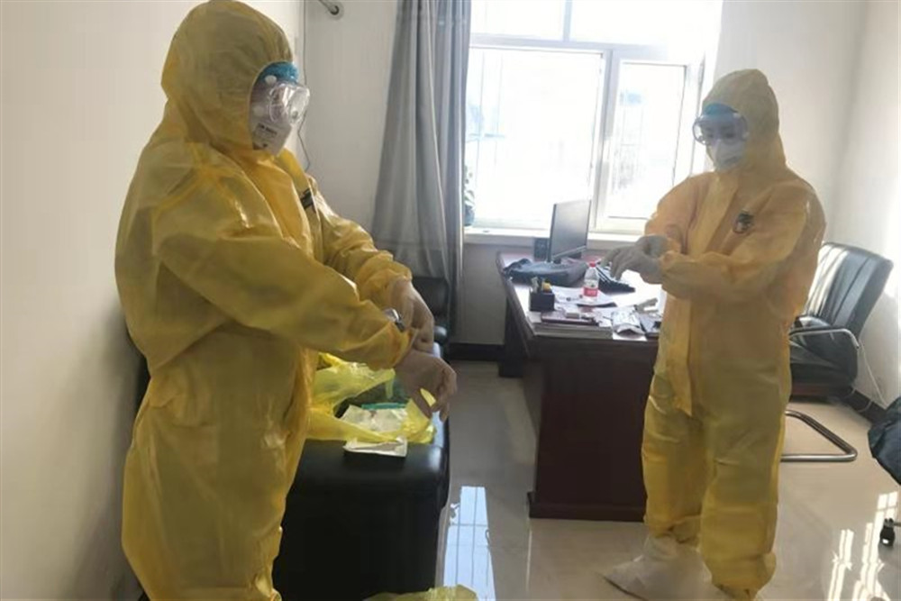 校医院医护人员为国际教育学院留学生测体温、采血化验,并普及新型冠状病毒感染肺炎预防知识