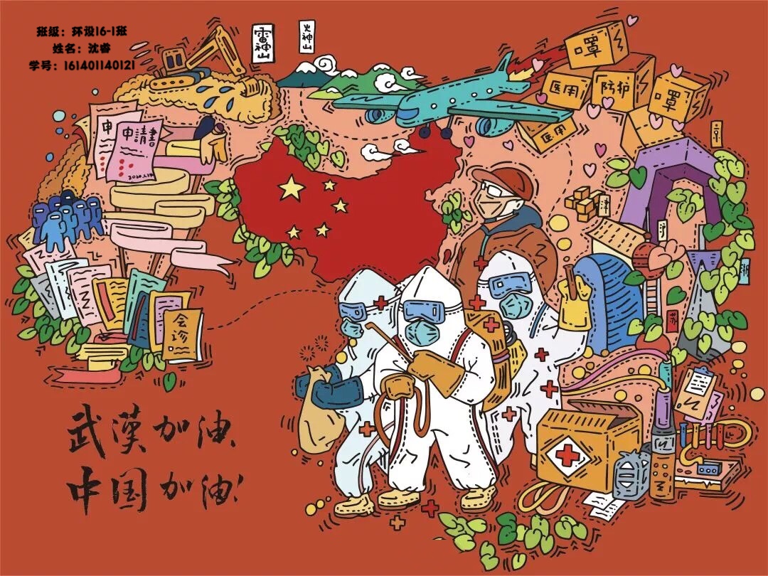近日,艺术学院美术系的同学们踊跃创作艺术作品,通过海报、宣传画等形式,歌颂一线疫情防控工作人员的拼搏、奉献精神,宣传科学防控疫情知识,宣示战“疫”必胜的坚定信心。