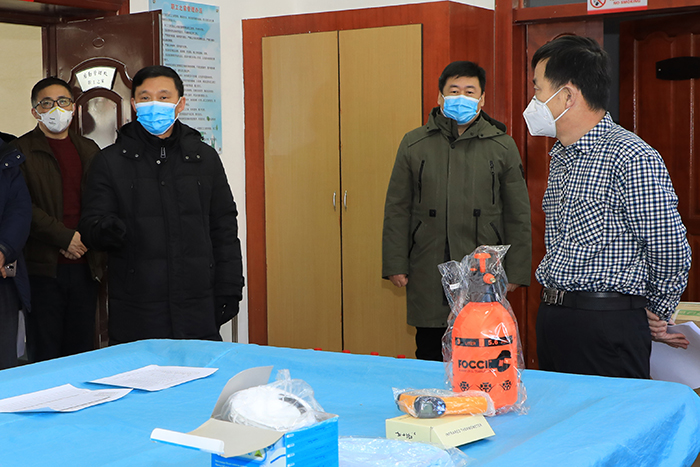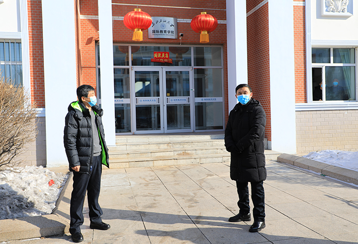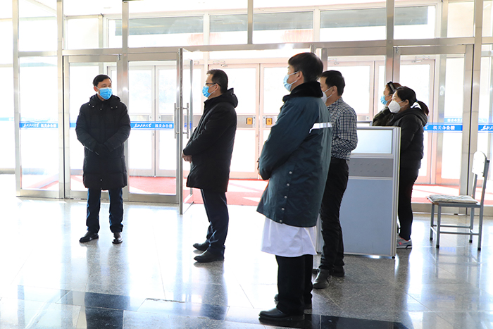 (文/图 赵秀波)2月16日上午,校长蒋明虎、校党委副书记刘景顺、校纪委书记王树森一行先后到机关楼门卫、后勤管理处、保卫处监控室、校医院、学校1号门、留学生公寓等重点部位和单位检查指导疫情防控工作,并代表学校向奋战在疫情防控一线的职工表示慰问。党委宣传部、党政办公室、后勤管理处、保卫处、校医院有关负责人陪同参加。