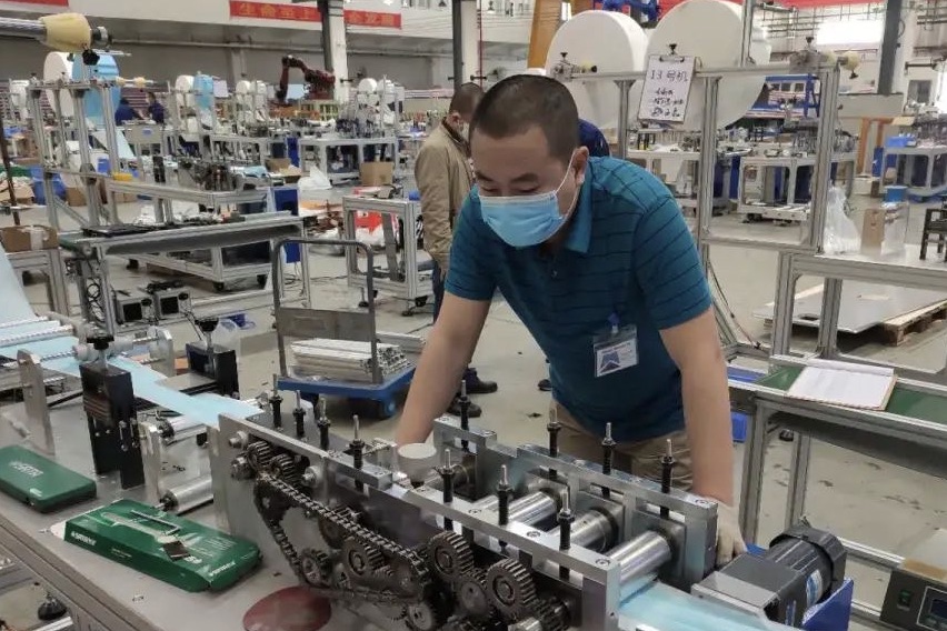 随着口罩生产线的订单像井喷似的供不应求。为了提升安装、调试的效率,厂家承诺谁的生产线能在规定时间内实现稳定运行,就立马将此条生产线打包运走。看着自己眼前这条正在装配的生产线,王磊下定决心:“这是我的,必须要拿下它,把它运回家!”