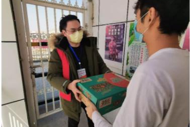 家住新疆库尔勒市的装备17-3班艾克拜·艾尔肯,在市团结街道阳光社区担任社区志愿者,负责在小区门口值守,劝阻居民减少外出。工作中,部分居民不理解、不配合,他没有任何抱怨,始终把群众的安全放在首位,想尽办法安抚、劝阻居民。为让居民更好地做好隔离,减少外出,他为社区居民购买生活必需品并送货上门,同时帮助在辖区内的单位消毒,为社区的疫情防控工作贡献力量。