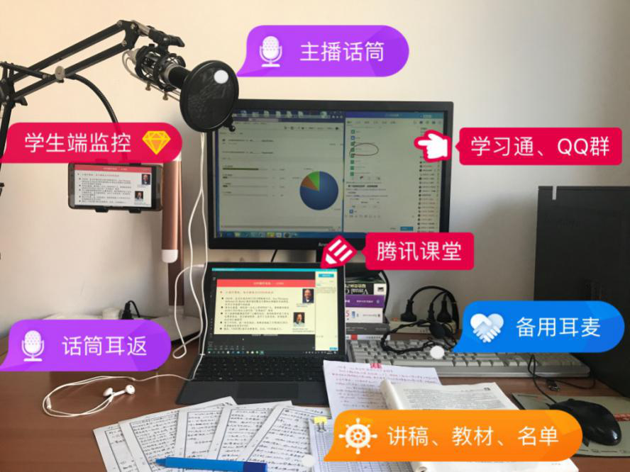 多层级部署,思想上积极迎“战”。计算机与信息技术学院提出“每门课程不因教师而停课,每名学生不因疫情而停学”的工作要求,多次线上召开院级领导、三级系主任副主任、院级教学督导组、全院教师等视频会议,积极落实学校各项要求,指导督促教师提高认识,充分开展线上教学准备工作;多次组织教师线上培训,帮助教师克服在线教学技术难关,保证疫情防控期间正常教学进度和质量;发挥计算机专业技术优势,组织优秀教师分享线上互动、教学演示、学生在线发言、电子共享白板、学生出勤等线上教学经验;针对线上教学的突发网络状况进行了研究与部署,制定了线上教学的应急方案。广大教师就如何转型“主播”、如何设计在线教学活动、如何让教学形式更丰富、如何了解学生知识掌握情况等,在群内展开头脑风暴,提出问题、分享经验,打造了“主播”专属“直播间”,从多个角度监测教学效果,形成了一套被广大教师采纳的线上教学设计方案。两周的线上教学过程中,学院教职员工积极行动,以“线上教学质量赶超线下,两者实质等效”为目标,确保了开学初线上教学的平稳、顺利进行。