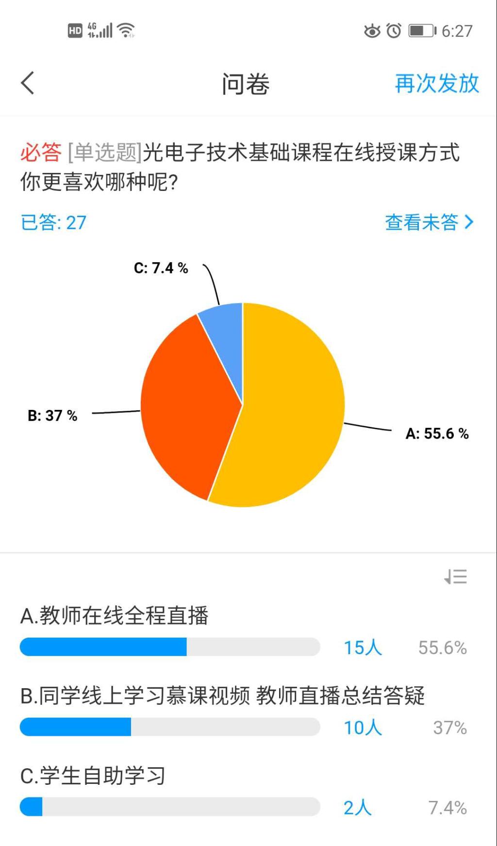 协同合作服务跟进,不断提升授课质量。跟踪教师教学和学生学习情况,收集、整理并分析相关教学数据,及时与教师、课程平台等沟通反馈。采取院系齐抓、家校沟通的方式进行教学质量全程监控。各部门创新工作方式,在严格管理的同时为师生提供优质服务:如组织教师探讨线上教学最适宜的方式和模式;总结线上教学的新办法、小技巧、好经验等并及时推广;每天组织授课教师进行总结反思,进行交流分享;坚持每天线上考勤,严格教学秩序;采用团队合作方式,主讲教师在线主讲时,课程组其他教师与学生以在线互动、在线投票等形式开展课堂管理;课堂采取随机发出问题投票的形式对学生听课情况进行了解;用音乐连接课前、课间和课后,为学生营造良好的课堂氛围。