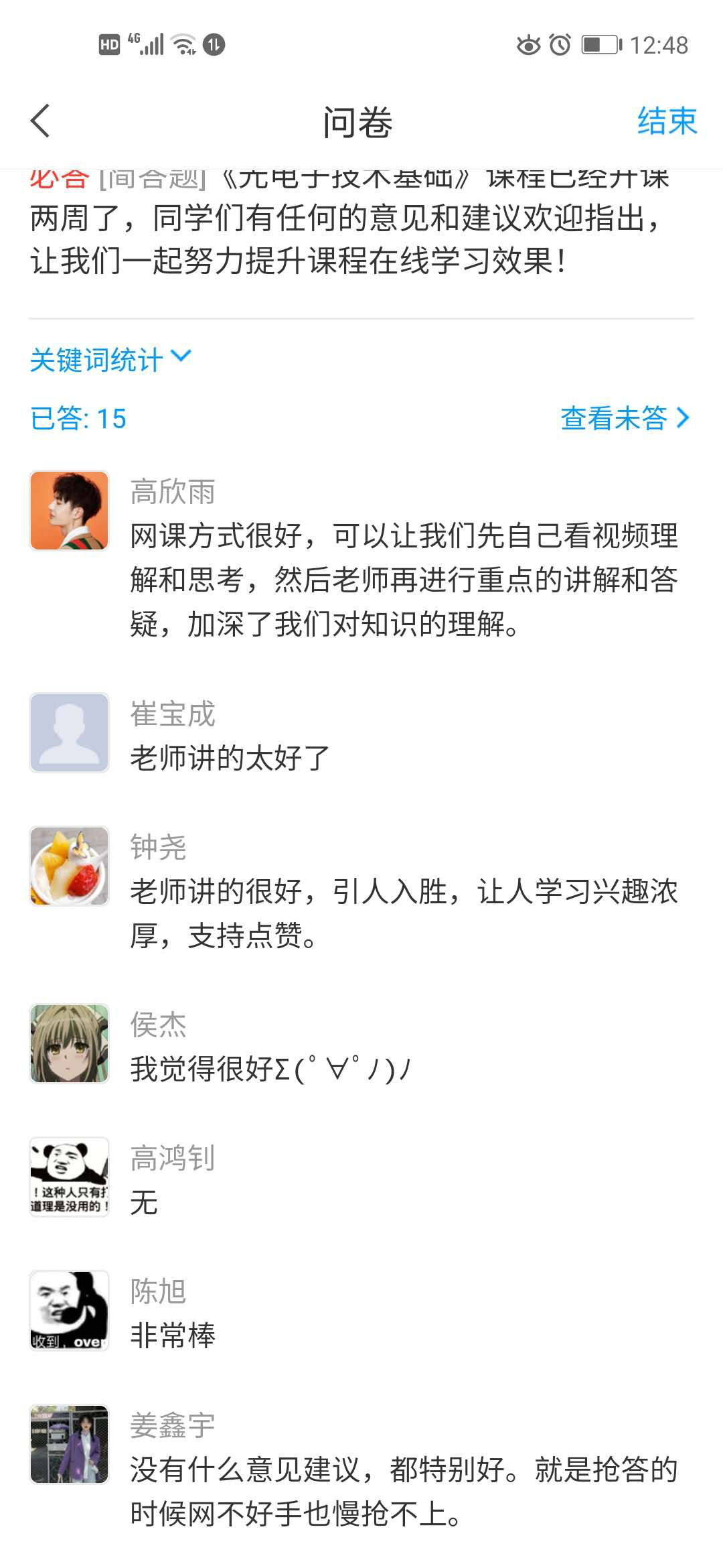教学效果和反馈。经过两周的具体实践,总体视频直播比较顺畅,互动较好,学生任务点学习进度正常,作业、签到等统计数据完整,基本实现线上教学目标,课程也得到了学生的积极反馈,学习能力有所提升。