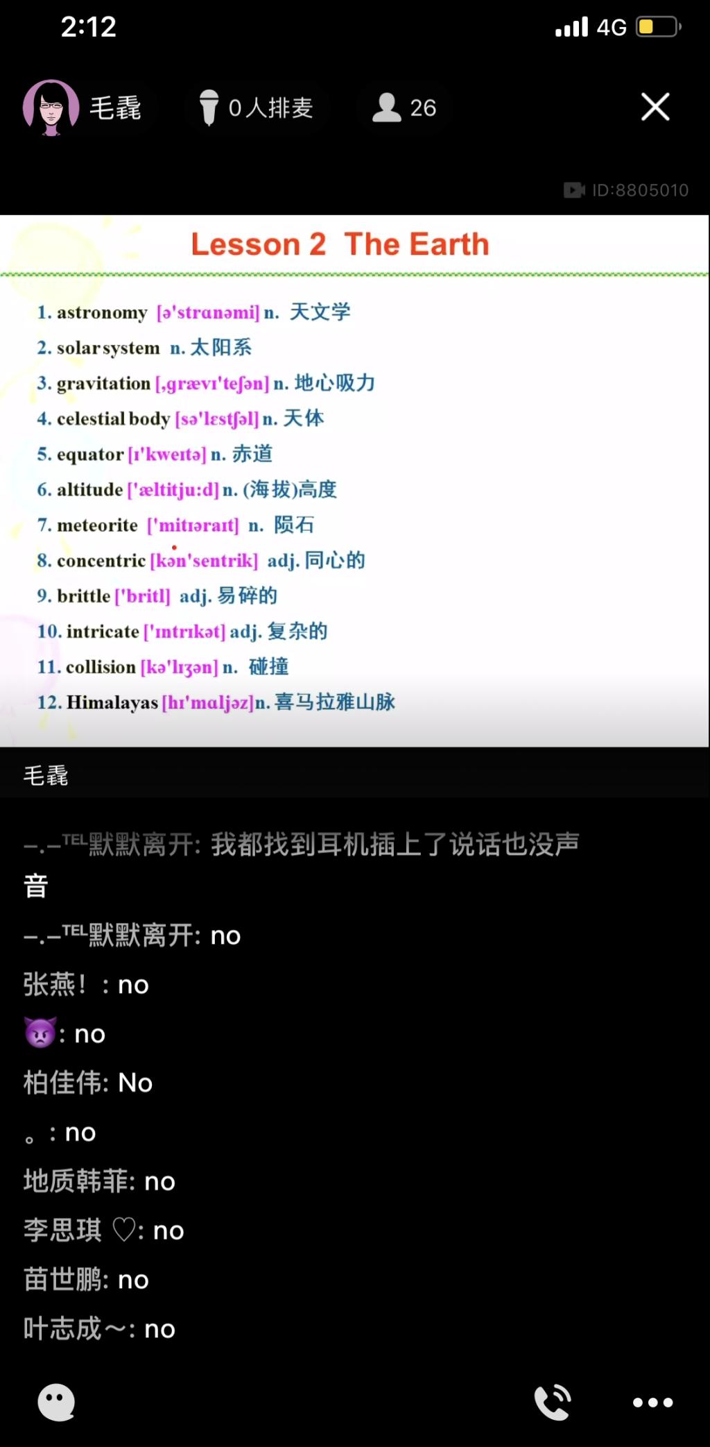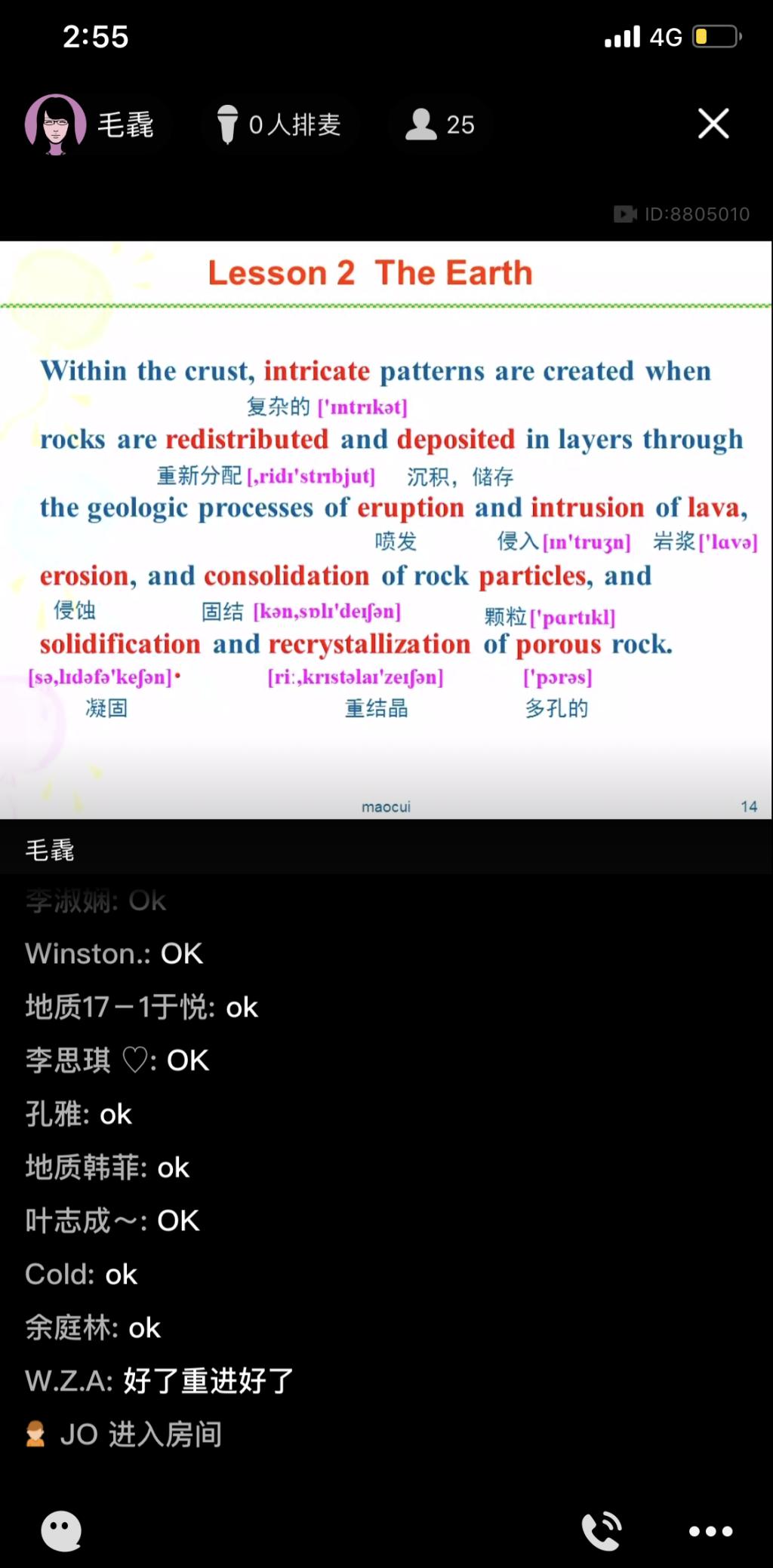 教学效果总结反思。线上授课有利于增强学生自主学习的积极性和主动性,有利于培养分析问题和解决问题的能力,也存在一些问题:QQ群课堂没有白板的功能,板书需提前准备好,以图片形式发送给学生;在学生发言申请、互动的过程中,连接需要耗费15-20秒钟的时间,如若每节课连线20位同学,预计约耗时5-8分钟时间,会影响课程进度;群课堂不能同时设置摄像头打开和多媒体展示,学生只能听到教师的声音,无法向学生展示肢体语言,需要设法加以改进。