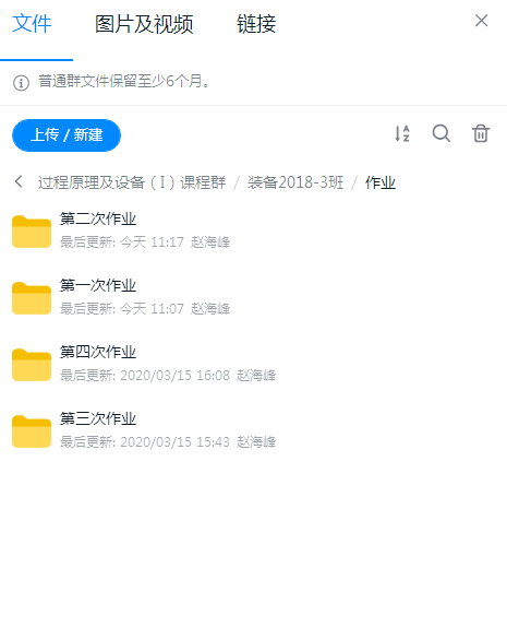 改变作业模式,掌握作业完成情况。在钉钉群中以班级为单位建立文件夹,在其内以“第X次作业”建立子文件夹。要求学生手写完成作业后并拍照,以“学号-姓名”进行命名,并上传至相应文件夹内,作为存档。依据提交作业的时间、正确性等情况完成学生平时成绩中作业成绩的考核要求。根据统计作业正确率,进行作业讲解,令学生掌握。