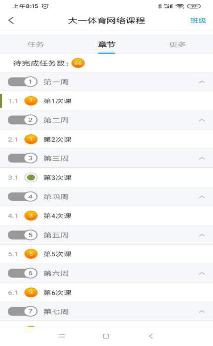 课中学习中,把一堂课分为两部分进行,第一部分学习太极拳,第二部分进行素质练习。教师在学习通发布签到,学生在学习通线上签到,签到后学生通过学习通进行 24 式太极拳技能学习。首先,学生把学习的内容录制微视频进行反馈,这种方式一方面可以提高学习兴趣,另一方面可以通过完成任务来督促学习,保证自主学习效果。在太极拳练习过程中,教师要进行过程监控和指导,解答学生遇到的问题。对共性问题,教师随堂录制动作示范发给学生。练习后,教师通过学习通发布线上测试,学生提交微视频进行学习成果反馈,教师在微信群通过视频随机抽测学生的学习效果,实现面对面监测和网络化监测同时进行。