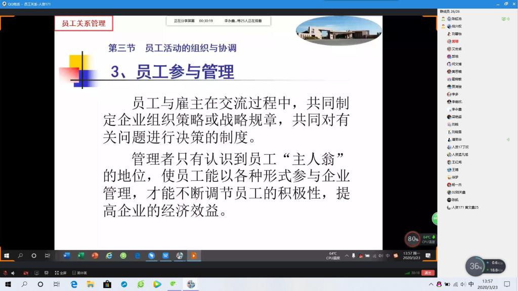 在疫情的特殊时期,为使教学不受影响,我校经济管理学院教师充分发掘各种适合线上教学的资源和工具,全力保障线上授课的形式和内容更丰富、效果和体验更好。其中,陈虹池老师讲授的《员工关系管理》是人力资源专业的一门重要的必修课,为提升线上教学效果,她对课程内容进行了丰富和完善,采用线上教学和线下自主学习相结合的方式,帮助学生更好地完成课程学习。