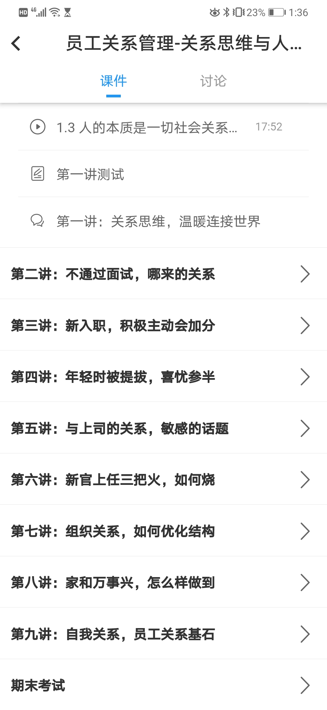 通过线上直播教学,让学生站在管理者的角度去看待员工关系管理,提前将课程中所使用的PPT上传到资料库让同学提前预习,随堂案例来讨论,布置带有开放性问题的作业,培养学生们理论与实践结合的能力。利用学堂在线《关系思维与人际技能》课程,让学生从员工自身的角度出发,帮助员工认识自身与同事、与上司、与组织的关系。课程内容对学生们日后进入职场能够起到指导作用。