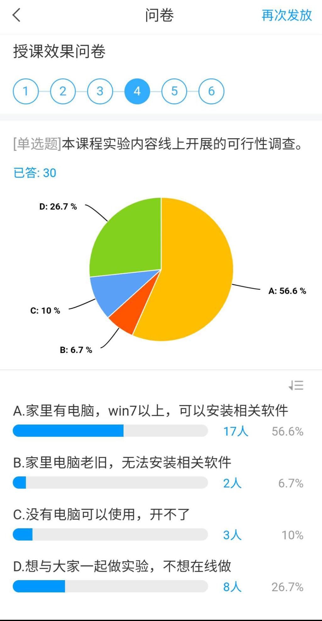课后加强问卷反馈,完善课程计划。课后发布问卷调查,搜集学生的学习感受和效果,让学生对课程内容、形式、细节提出修改建议,同时对后续实验课程开展形式进行调研,对学生提出的问题和建议进行解答,安排下一步课程计划。