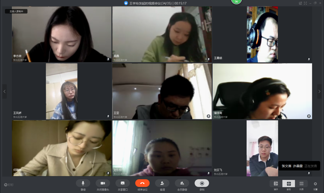 4月4日、5日两天,党史专业、社会工作专业硕士生毕业预答辩按计划相继展开,20名硕士生导师、78名2018级硕士生分为四组,由学院党委书记李精华、院长张文喜分别担任组长,借助钉钉平台进行预答辩。答辩开始前,组织全体导师召开视频会议,副院长陈竞飞明确了相关人员职责和评判标准。各答辩组发起视频会议,组织学生与导师进入会议开始答辩,要求答辩中学生全程开启摄像头,留存影像记录。