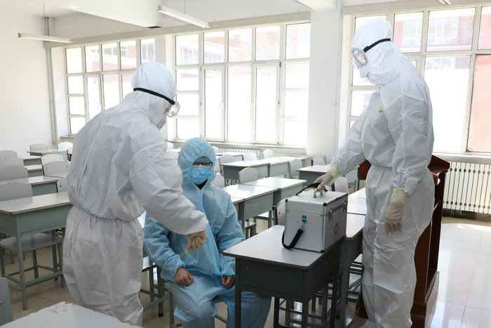 上午9点,演练从某学生在寝室出现了发热症状后报告辅导员开始,校医赶来后立即将发热学生带至备用寝室并复测体温≥37.3℃,同时上报学校疫情防控指挥部,学校安排专车将发热学生送到属地卫健委指定的发热门诊就医,并安排寝室其他学生暂时到备用寝室临时隔离,发热学生经检查排除新冠肺炎可能,体温恢复正常范围,解除所有密切接触学生隔离。