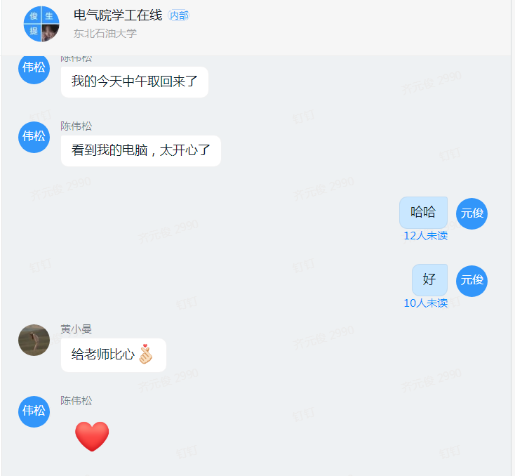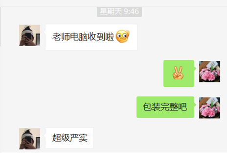 “看到我的电脑,太开心了!”、“给老师比心”......收到物品的同学们纷纷为贴心的老师们发来信息,字里行间溢满了欣喜与感谢之情。