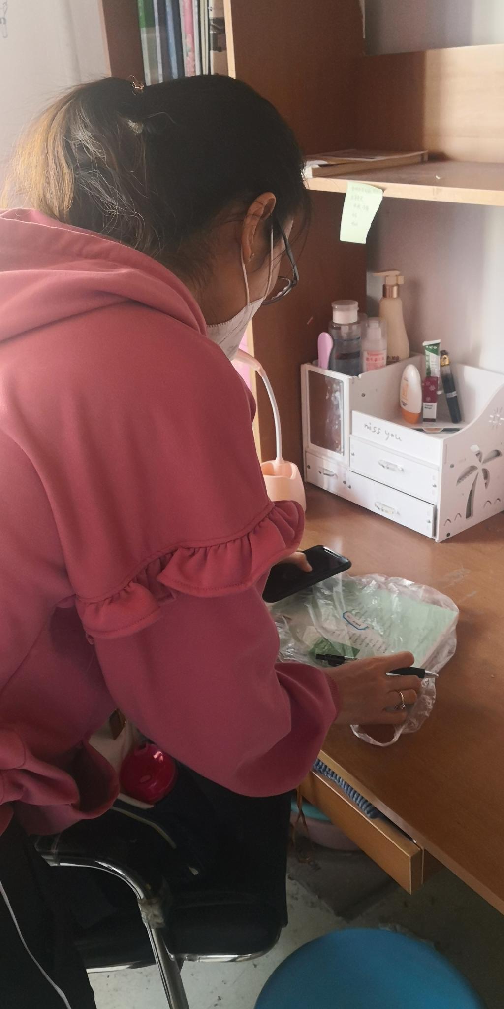 辅导员老师包装物品并贴标签