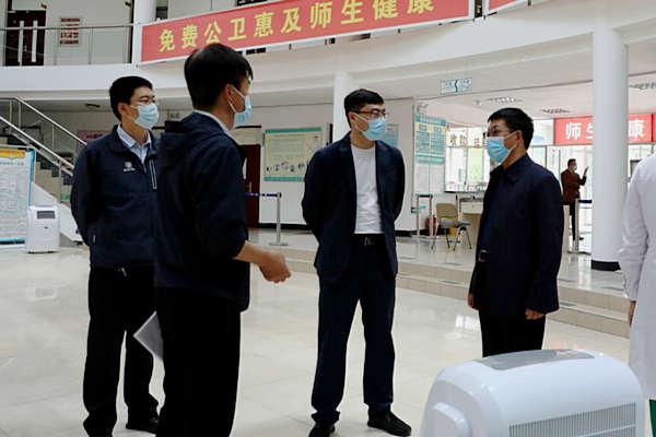 督查验收组实地走访了我校疫情防控隔离区、校医院、教工食堂、学生公寓等疫情防控重点区域