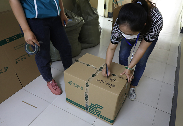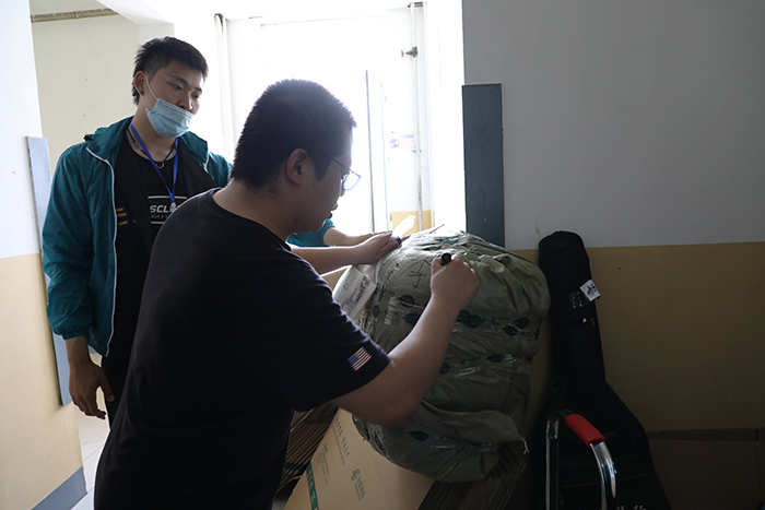 (摄影 许丽娜 王超颖)打包爱与祝福,温暖回家之路。为做好受疫情影响不能返校毕业生的行李、物品打包邮寄工作,6月13日起,我校开展“打包爱 邮祝福 温暖回家路”行动。行动首日,200余名教师来到学生宿舍,为毕业生整理、打包、邮寄物品,亲手为同学们送上一份来自学校的贴心关爱与温暖祝福。