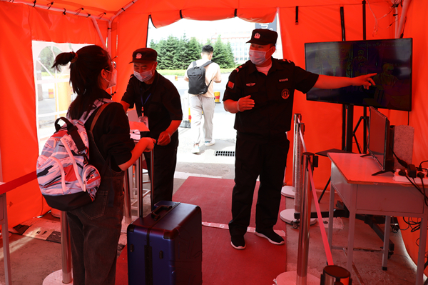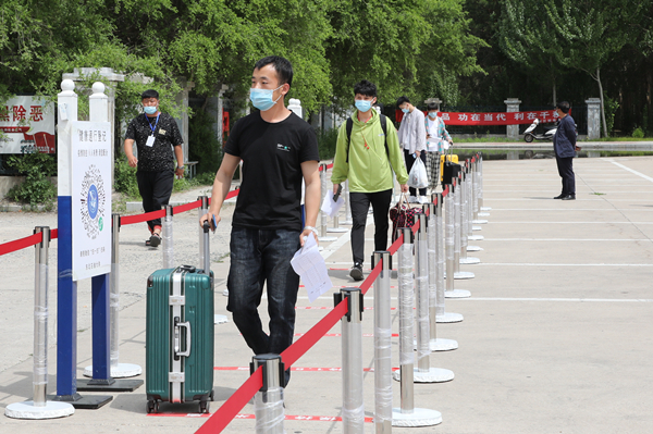 (文/图 许丽娜)分别时白雪皑皑,再见时花开半夏。6月18日至19日,我校迎来第二批错峰返校学生,寂静的校园再次充满了欢乐、灵动与朝气。返校当天,校领导孙明学、蒋明虎、郝丽红、于长青和各学院、相关部门负责人及老师们在学校1号门迎接学生回家。