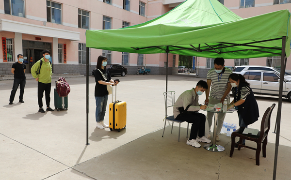 扫码、测温、持有效证件及证明进校园,在辅导员的指导下办理宿舍入住,第二批错峰返校的学生们安全、有序地回到东油校园。为了做好返校工作,按照大庆市疫情防控指挥部及学校疫情防控领导小组要求,全校上下以严谨负责的态度、精心暖心的服务和一系列扎实有效的举措做好充分准备,为归来的东油学子提供优质服务和坚实保障。返校前,老师们、辅导员们一次次和同学们连线,告知返校注意事项,确定返校路线,叮嘱路上做好防护;返校中,学校专门派接站车在火车站、机场接学生返校,保卫处按照学生入校流程,筑牢校园第一道防线;返校后,学生食堂精心研制菜谱,根据营养需求合理搭配荤素,采取小窗口无接触售餐方式,实行“一人一桌、同向就餐”的模式。校医院为返校学生准备爱心健康包、做核酸检测,并以点对点、人对人的方式,对接大庆市萨尔图区卫健委、萨尔图区疾控中心、应急救治医疗机构(大庆市人民医院和大庆市第二医院)等部门,开通绿色通道,方便学生应急救治。东油的全体教职员工用爱与温暖、认真与细致落实好学生返校的每一个环节,确保学生们的生命安全和身体健康及学习生活的正常开展。