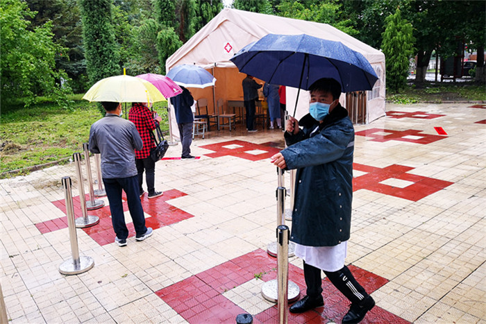 据悉,核酸检测结果将作为我校教职员工返岗和学生校内自由流动的重要依据。为避免人员聚集,校医院提前一周布置了采样场地,搭建专用帐篷、拉好警戒线,并粘贴1.5米安全距离标识;医务人员引导受检者有序排队、保持人员大间距,确保集中检测安全有序。