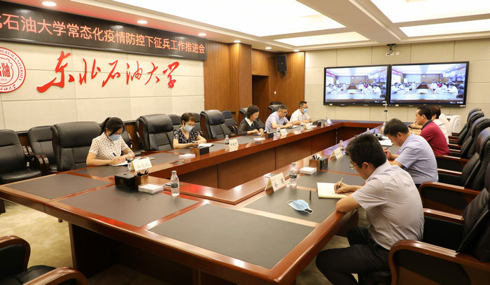 (通讯员 王福军 记者 许丽娜 刘桐同)为深化贯彻落实习近平强军思想,进一步做好我校大学生征兵工作。7月9日,我校在机关5楼会议室召开常态化疫情防控下征兵工作视频会议。校党委副书记刘景顺,党委副书记、工会主席郝丽红和学校征兵工作领导小组成员参加会议,各学院副书记和辅导员通过钉钉平台参加视频会议。武装部部长张庆民主持会议。