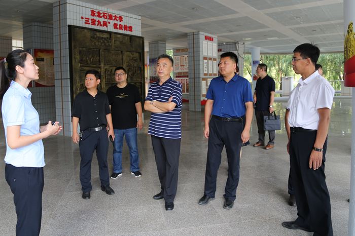 调研中,纪立功、李龙一行在校区主要领导陪同下,参观了电气信息工程系西门子PLC智能制造实验室、大学物理与电子测量仪器实验室和华为5G技术实验室等5个实验室及大庆精神育人展厅。