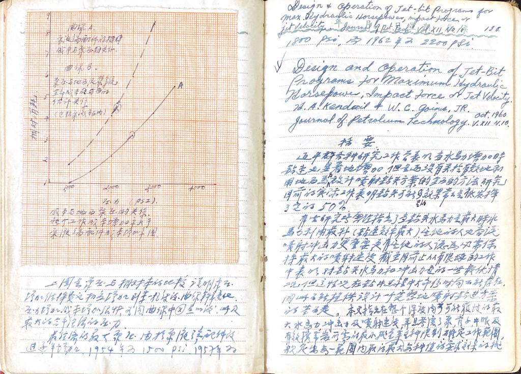 1960年,正值三年自然灾害期间,一批来自北京的教师放弃优越条件毅然北上,克服着难以想象的困难,一年里实现了学校从筹建到开课。当我在李邦达老师那儿看到石油开发系第一任主任周世尧教授的夹杂中英双语的读书笔记时;当我听到翟云芳老师讲述老师们自己动手改造马厩,靠水盆、手捏水管加压验证雷诺实验的故事时;当我在1961年来校工作的油藏工程专业创始人张子香老师家里,看到珍藏至今的“油藏数值模拟”教材手稿时,我仿佛一下子悟到了东油“三宝”“九风”的真谛。