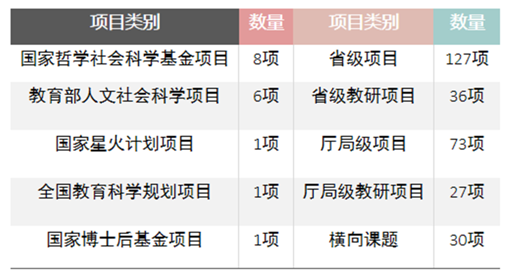 省部级教改教研项目36项,厅局级教研项目27项,其中教育部产学合作协同育人项目7项。