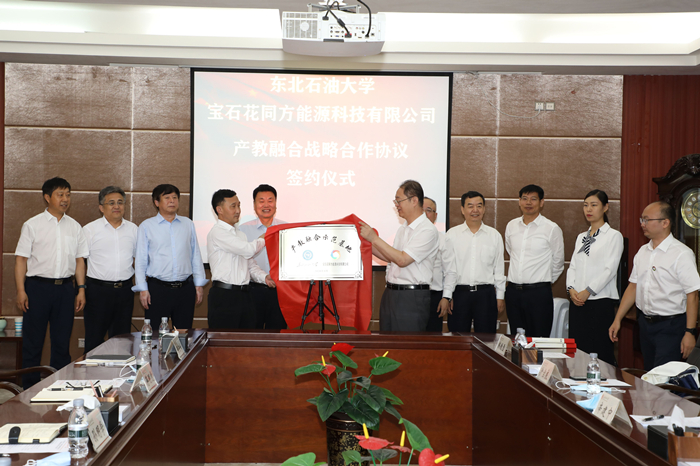 (通讯员 高梦 记者/摄影 樊星)为进一步贯彻落实《国务院办公厅关于深化产教融合的若干意见》(国办发[2017] 95 )等文件精神和要求,9月1日,我校与宝石花同方能源科技有限公司在机关楼四楼会议室举行产教融合示范基地揭牌仪式。校党委书记孙明学、校长蒋明虎、副校长牟海维,宝石花同方能源科技有限公司董事长李杰训、总裁辛建中、副总裁李国祥等企业代表,土木建筑工程学院、地球科学学院相关负责人和相关专业教师参加揭牌仪式。仪式由孙明学主持。