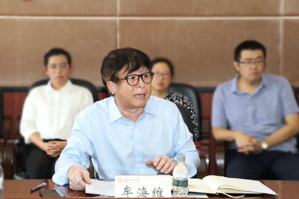 牟海维简要介绍了学校的科研情况,指出此次合作是基于双方优势资源的深度融合和互相支持,通过基地建设,教师可结合企业实际需要开展科研项目研究,将科研成果落地,并将实践经验融入教学中;企业也可通过与高校开展合作,提高生产力。