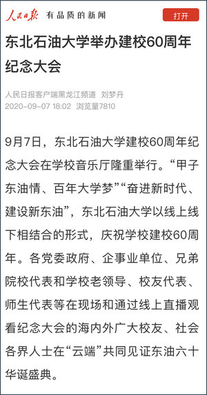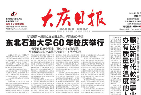 (记者 许丽娜)9月7日,我校喜迎60华诞,学校以“云”为主、线上线下相结合的方式,举办了纪念建校60周年系列活动。省委常委、宣传部部长贾玉梅出席校庆纪念大会并讲话,50万人跨屏云聚,共享东油甲子荣光。校庆纪念活动得到了媒体的广泛关注,15个国家及省市级媒体进行了报道。