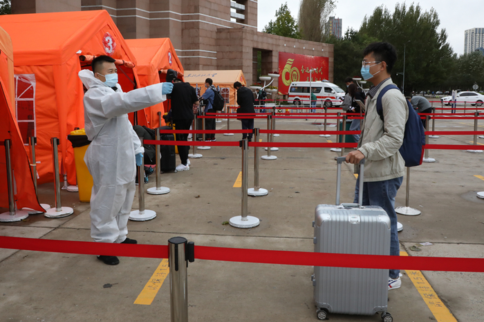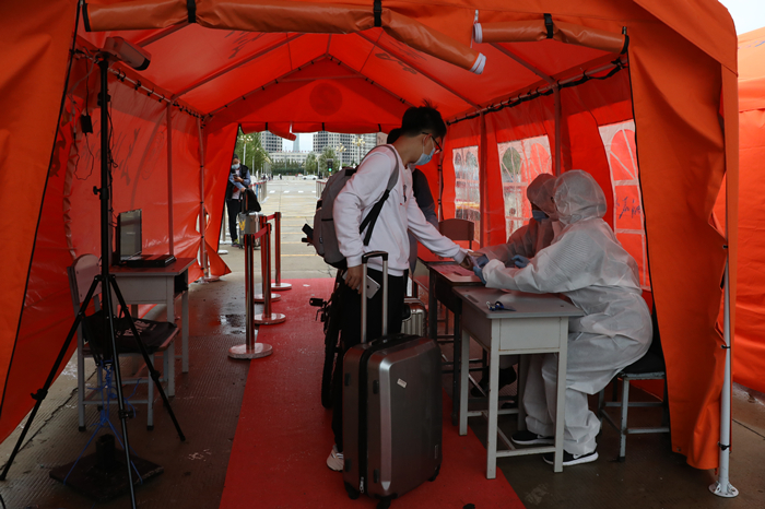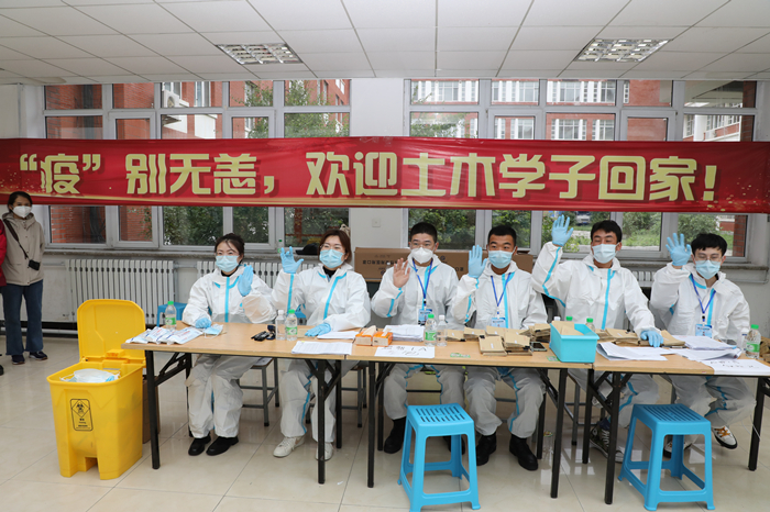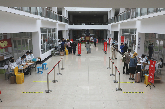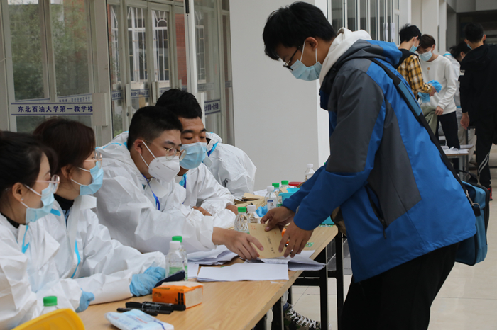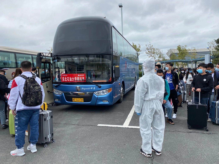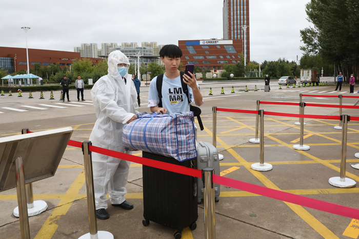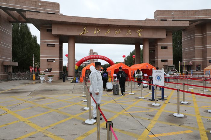 从清晨五点开始,学校在大庆站、大庆东站、大庆西站、萨尔图机场等地设立的接站点就开始迎接返校学生。“同学,请出示龙江健康码”“同学,请保持1.5m的安全距离”“同学,请接受体温检测”。在学校1号门,返校的学生们整齐有序地排着长队,配合工作人员进行核验工作。出示龙江健康码、核查一卡通或学生证等身份信息、检测体温,经过一项项严格而高效的查验后,才能进入校园。返校期间,恰逢台风“海神”登陆,为确保学生安全,我校制定紧急预案,将各学院报到地点转移到图书馆及第一教学楼阳光大厅。学生在各学院报到点接受第二轮返校检查,递交东北石油大学学生健康检测表,办理“允许入住公寓证明”,领取爱心防疫餐包,并进行核酸检测。核酸检测后,学生需回到寝室进行自我隔离,等待核酸检测结果。