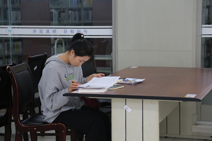封闭已久的图书馆再次打开了大门,勤奋的同学们早早来到自习区,畅游在知识的海洋中。