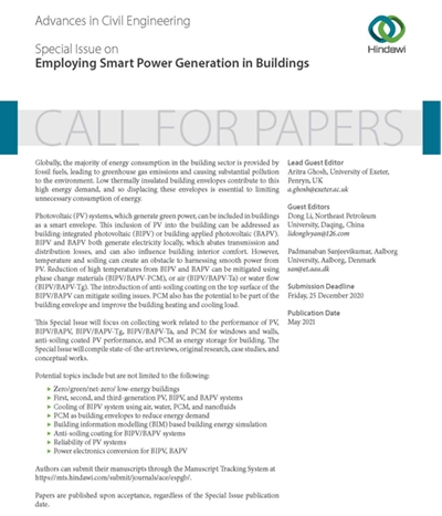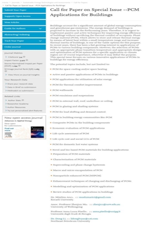 《PCM Applications for Buildings》和《Employing Smart Power Generation in Buildings》特刊征稿启事