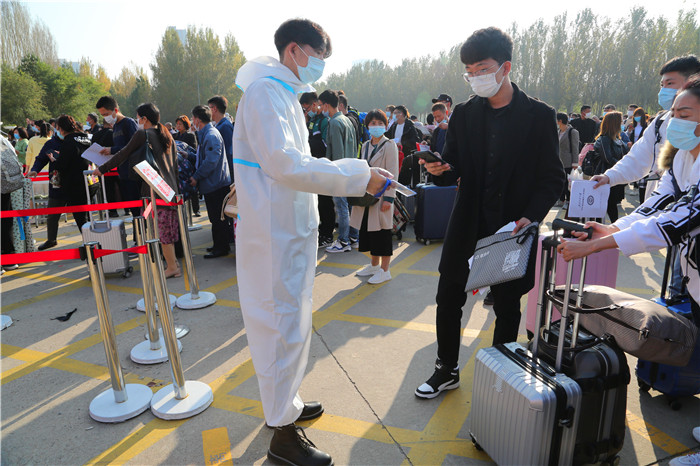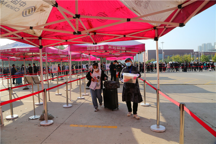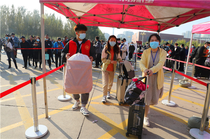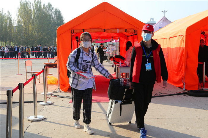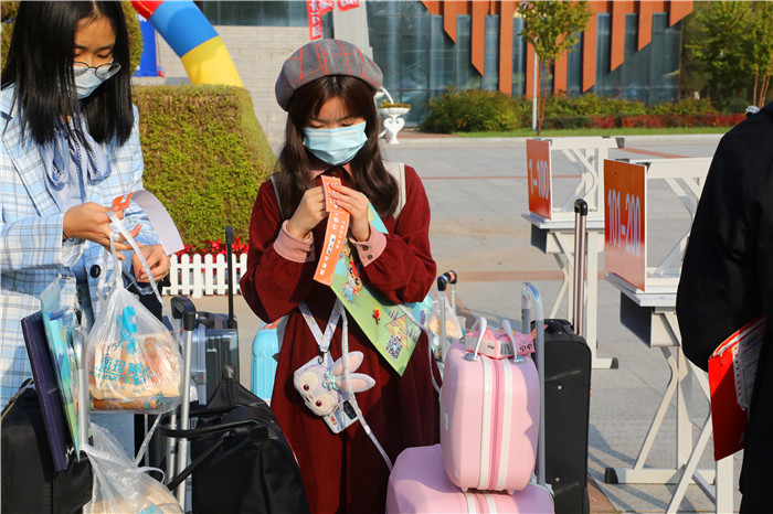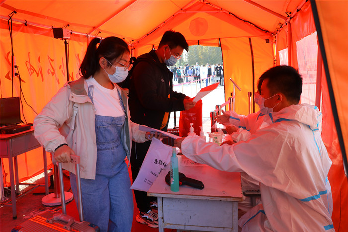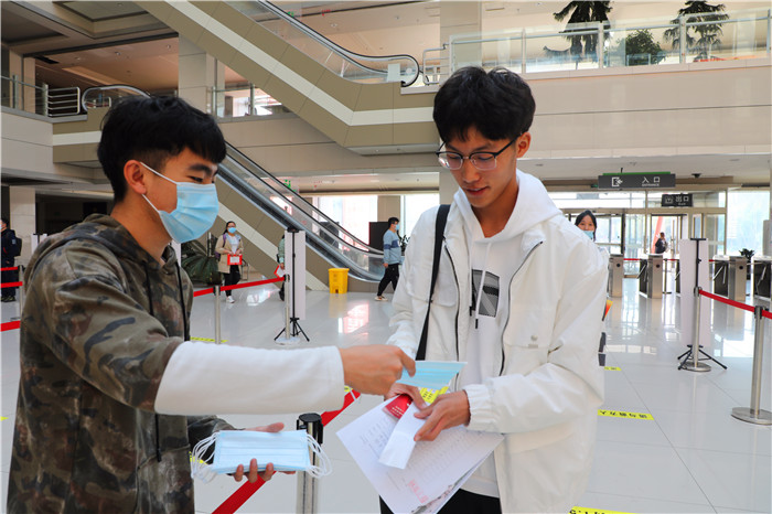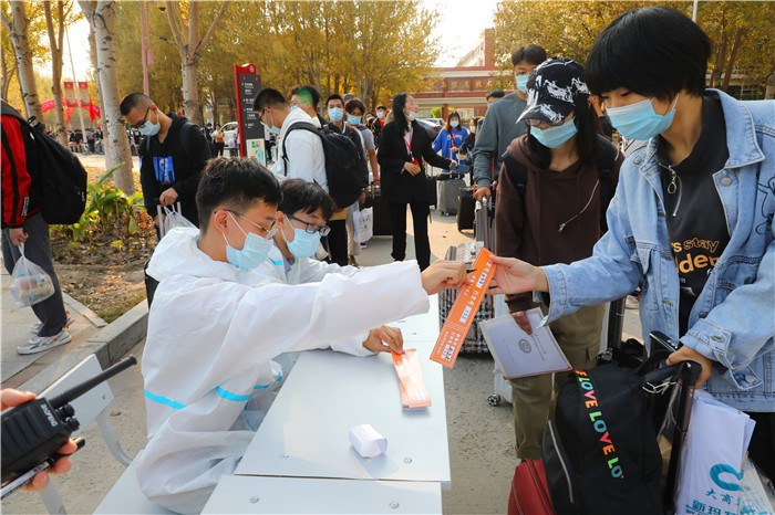 清晨6点,接站老师及志愿者手持指示牌,早早地等在大庆东站、大庆西站、萨尔图机场等接站点,引导新生乘坐接站车前往学校。到达学校一号门的新生,经过出示“龙江健康码”、测温、递交《东北石油大学学生健康检测表》后,被等候多时的志愿者有序引导至报到点。在图书馆各学院报到点,新生经过核对报到信息、收取《东北石油大学学生健康检测表》、分配宿舍、发放核酸检测码、领取防疫爱心餐包及一卡通等流程,携带核酸检测码到指定区域进行检测,在隔离区域等待检测结果,各学院志愿者引导检测结果合格的新生前往宿舍。