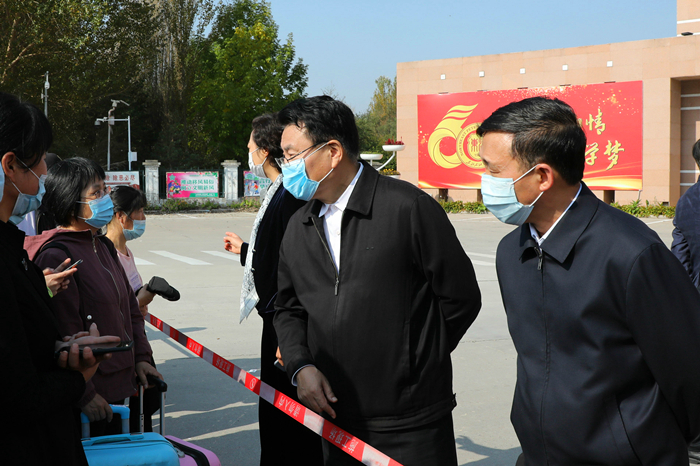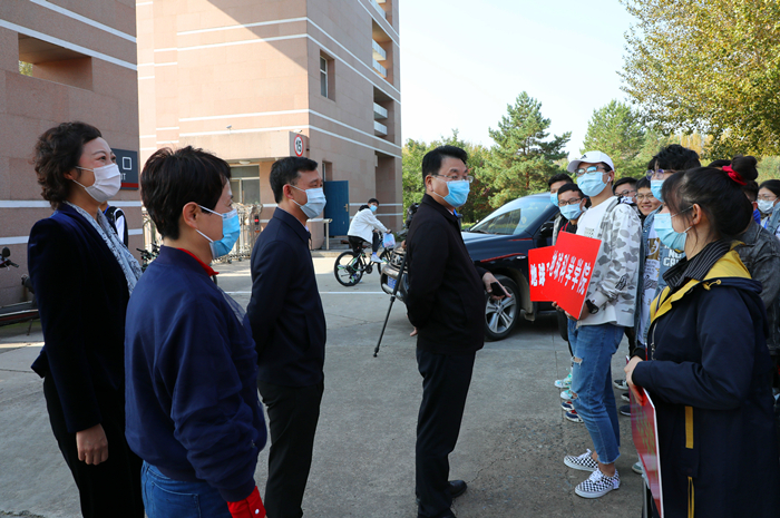 校领导孙明学、蒋明虎、郝丽红、高洪峰、牟海维、于长青到一号门、图书馆新生报到点、学生宿舍等迎新现场指导工作,慰问工作人员和志愿者,并与新生及家长亲切交流。“同学,你来自哪里”“乘坐什么交通工具来学校”……校领导详细了解新生的报到情况,勉励大家尽快适应大学生活,珍惜光阴、努力学习、奋发成才。