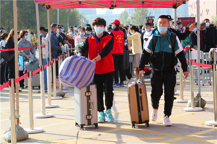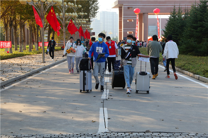 在忙碌而有序的迎新现场,活跃着一支由机关教工、老师、各学院学生组成的志愿者团队,他们辛劳奔波的身影成为一道靓丽的风景线。他们奔走于迎新工作第一线,在各迎新点为新生介绍报到流程、搬运行李、解答疑惑;在图书馆、一教阳光大厅等处疏导人流、维持秩序;在行李寄存处为新生保管行李。各学院老师将私家车作为爱心服务车,来往于报到现场与宿舍之间,热情为学生搬运行李。志愿者们细心周到的服务获得了新生们的好评,校园内处处洋溢着“走进东油,就是一家人”的温暖。石油工程学院新生辅导员金姗说:“希望20级的萌新们在东油迎接新的挑战,绽放属于自己的光彩。”教工志愿者、校工会宣教文体部主任陈云说:“参与迎新工作,体会到疫情防控常态化下迎新工作的困难,大家的敬业精神也让自己深受感动,要在工作中学习和发扬。”新生导生、地球科学学院勘资18-2班左诚说:“参与迎新工作感到很荣幸,希望同学们在东油拥有一段愉快的旅程,书写自己美好的人生篇章。”迎新志愿者、经济管理学院国贸18-1班刘晗说:“迎新过程虽然繁忙劳累,但看到学弟学妹露出开心的笑容时,感觉一切都是值得的。”