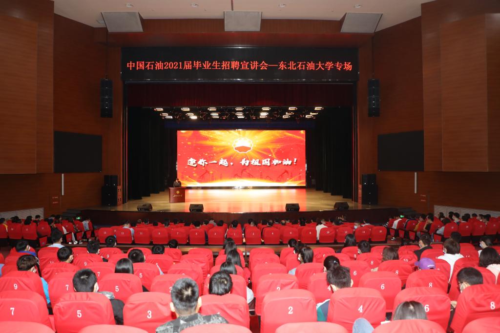 (通讯员 濮御 摄影 樊星)9月27日,中国石油2021届毕业生专场招聘宣讲会在我校音乐厅举行。副校长牟海维,中国石油天然气集团有限公司人事部员工管理处副处长刘巍,大庆油田、大庆石化、新疆油田、长城钻探、管道分公司等中国石油下属35家单位的70余名代表、我校招生就业处工作人员、全体毕业班辅导员以及300余名毕业生参加宣讲会。