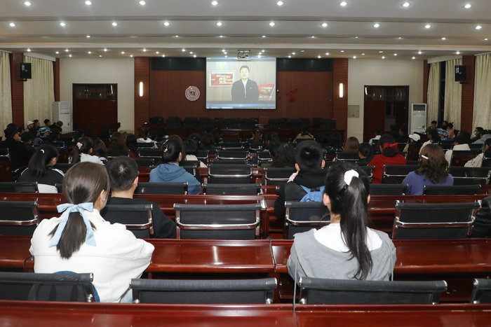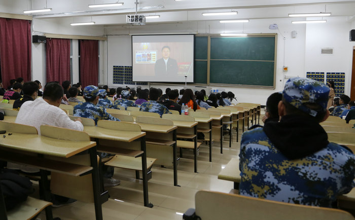 (文/许丽娜 图/樊星 刘桐同)10月8日晚,我校音乐厅和第一、二教学楼及音乐楼的教室里灯火明亮,结束一天军训任务的全体2020级新生们在认真聆听入学后的第一堂思政大课。校党委书记孙明学通过视频,以《感悟时代中国,强化青年担当》为题,为全体新生带来了生动精彩的抗疫思政大课。