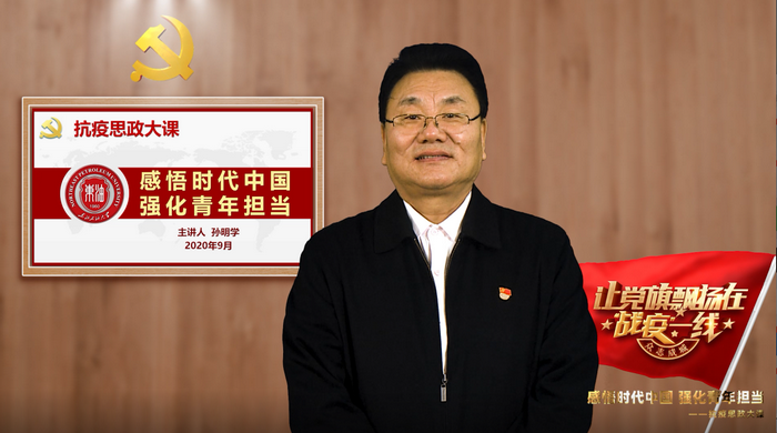 孙明学在课上讲到,面对疫情,我们看到了生命至上、举国同心、舍生忘死、尊重科学、命运与共的伟大抗疫精神,这些精神充分展现了中华文明的深厚底蕴,是中国精神的生动诠释,更丰富了民族精神和时代精神的内涵,我们要大力弘扬伟大抗疫精神,使之转化为全面建设社会主义现代化国家、实现中华民族伟大复兴的强大力量。