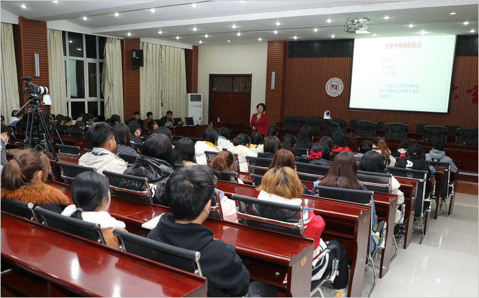 课上,宋玉玲以丰富、详实的史料和鲜活、生动的现实为基础,从历史、哲学、美学和社会学的维度,阐述了大庆精神的哲学内涵与美学价值。宋玉玲讲到,青年学子要全面领会大庆精神科学内涵中的哲学与美学价值,领悟大庆精神与创新、协调、绿色、开放、共享五大发展理念和社会主义核心价值观的逻辑统一性,才能更好地继承、弘扬大庆精神,并内化为自己的精神追求和行动自觉。