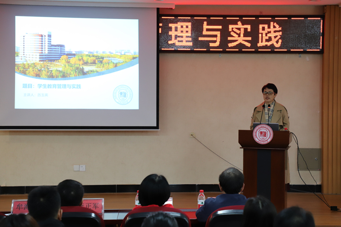 14日上午,历玉英在校区2教101静学报告厅做了《学生教育管理与实践》专题报告。学校副校长牟海维,校区党委书记李正军及领导班子成员、校区各系(部)主任、全体机关教辅人员及辅导员参加了报告会。报告会由牟海维主持。