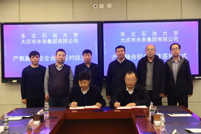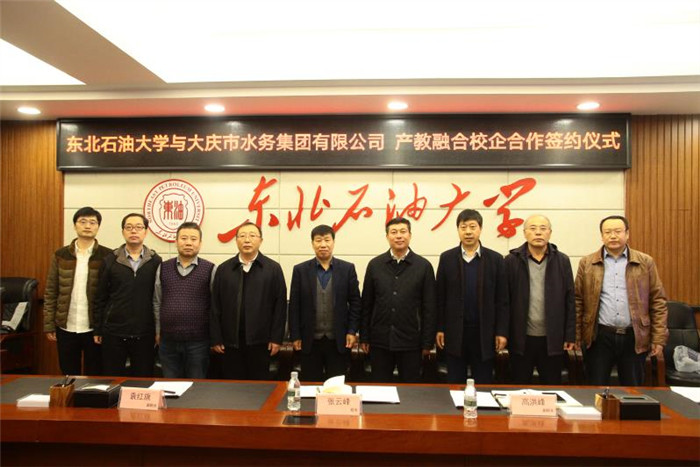 (通讯员 平贵东)11月6日上午,我校与大庆市水务集团有限公司在机关楼5楼会议室举行产教融合校企合作框架协议签约仪式。大庆市水务集团有限公司董事长田世奇、总经理于清江、纪委书记陈万里、副总经理邢世凯、水质检测公司经理张涛、质量环保部主任曹金玉等企业代表,我校副校长高洪峰、相关学院负责人及教师代表参加仪式。
