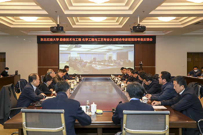 胡绳荪代表联合专家组对勘查技术与工程、化学工程与工艺专业考查的总体情况进行反馈。专家组严格按照考查标准,通过座谈交流、实地走访、查阅资料、师生访谈等多种形式,对两个专业自评报告和举证材料真实性进行了核查。专家组一致认为,东北石油大学多年来坚持将“大庆精神、铁人精神”融入到人才培养当中,有非常鲜明的育人特色,两个专业能够依据认证标准实事求是地开展专业认证的自评工作,提供的举证材料客观真实,能够反映专业的实际办学情况。专家组成员万力、倪瑛、夏淑倩、庄志军分别结合专业认证七个方面的指标达成度作了详细评价和反馈,同时,也对学校和地球科学学院、化学化工学院的发展建设提出了中肯的建设性意见。